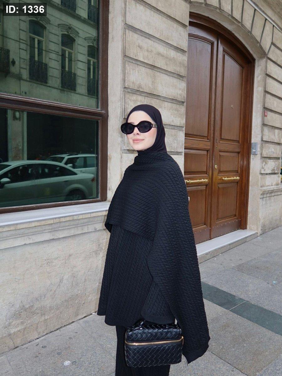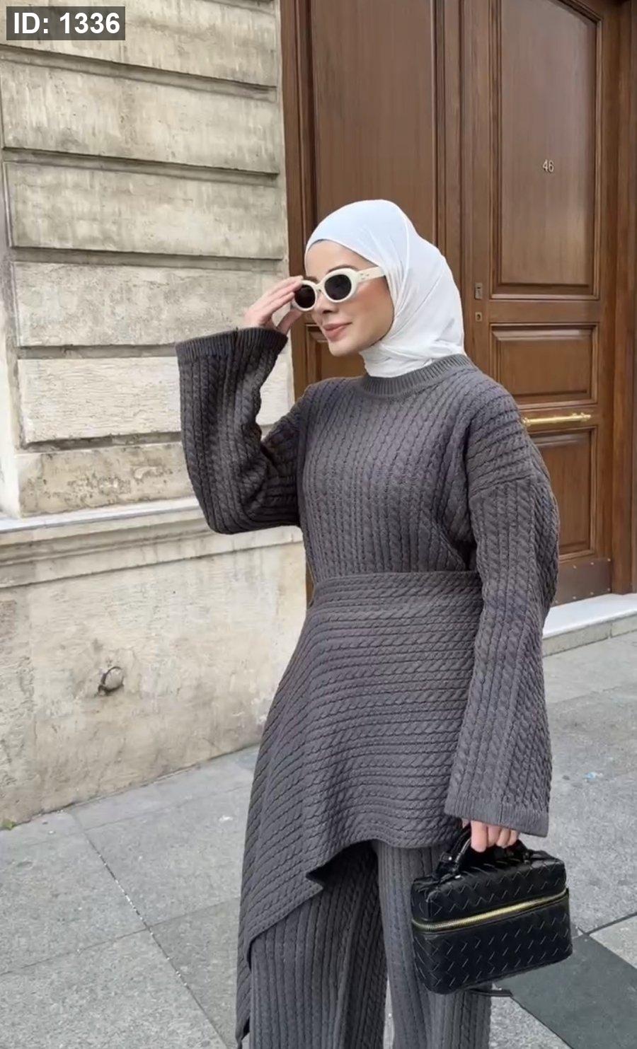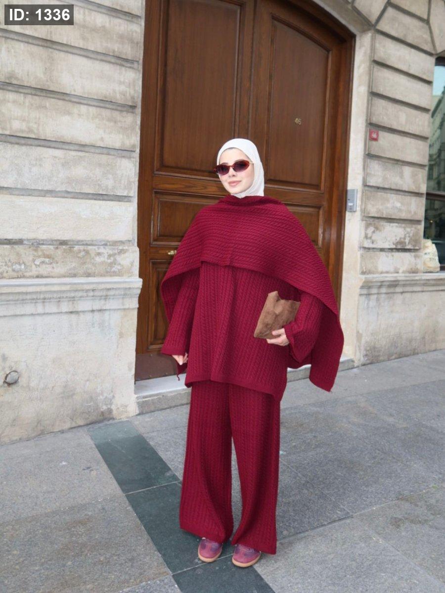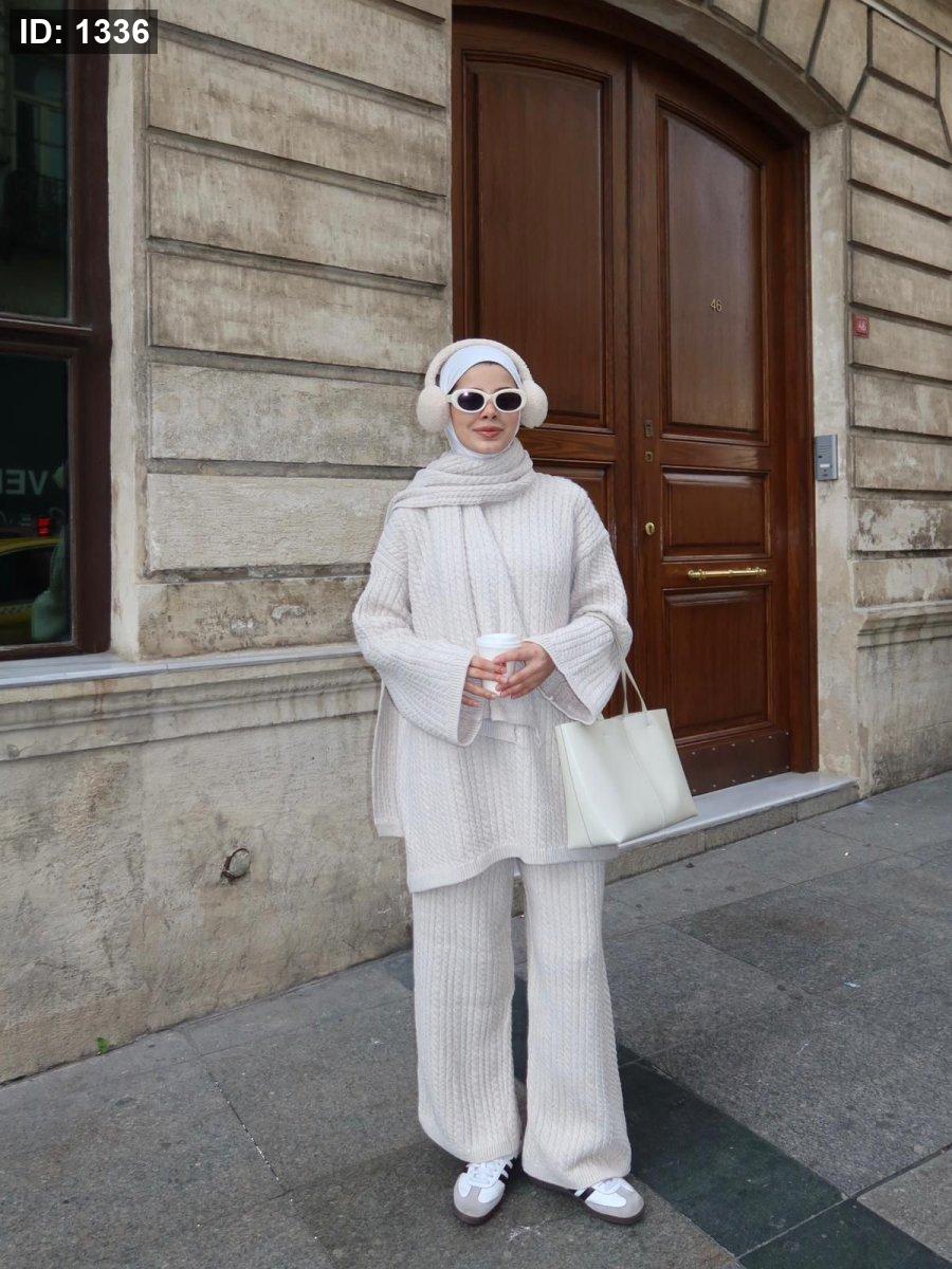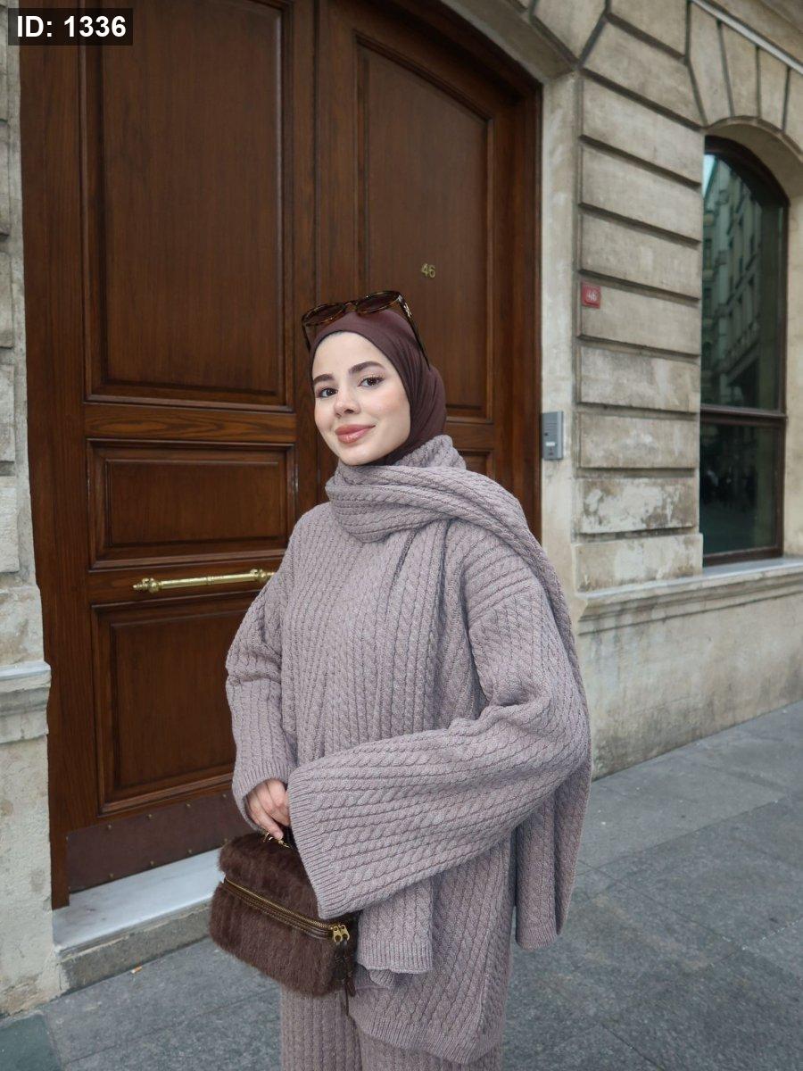 طقم صوف تقيل مع سكارف عريض