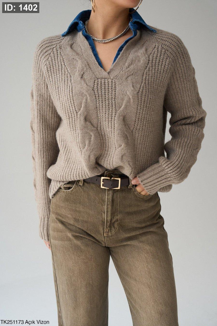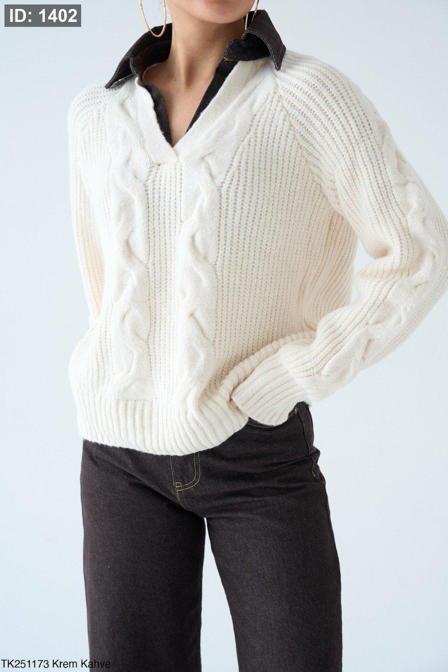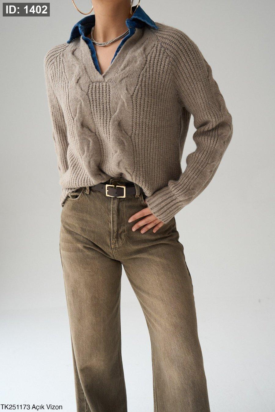 بلوزة صوف مع قبة جينز