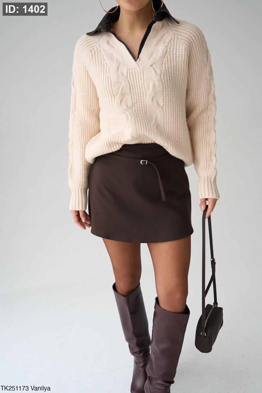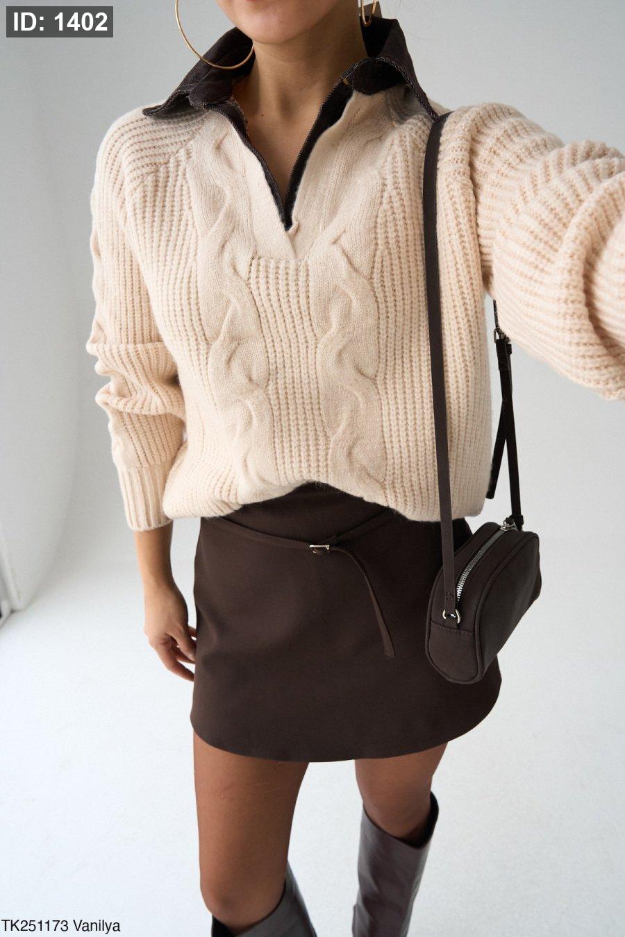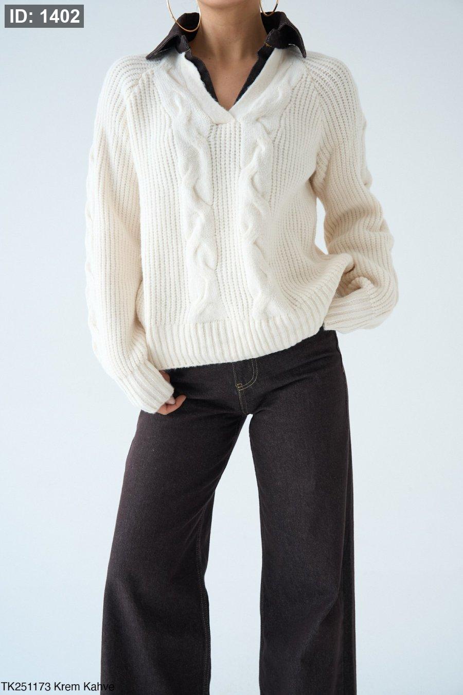 بلوزة صوف مع قبة جينز