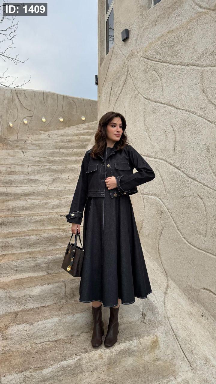 طقم جينز -فستان مع جكيت