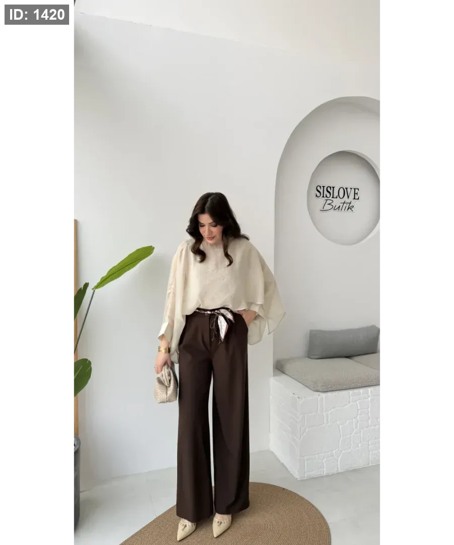 بنطلون مع حزام جلد