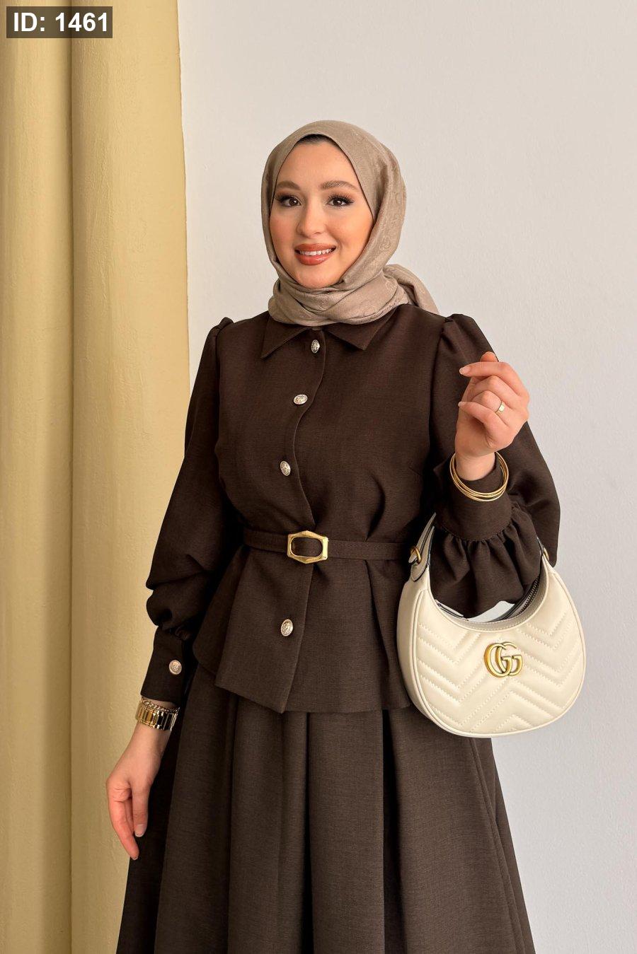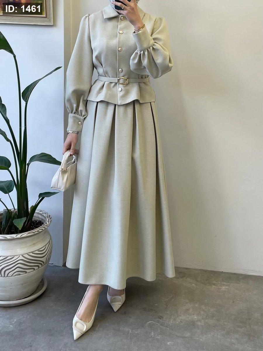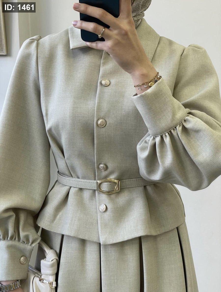 الطقم ٣ قطع : جكيت وتنورة وحزام جلد