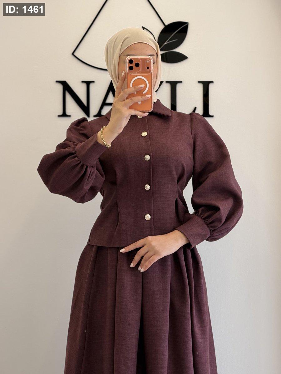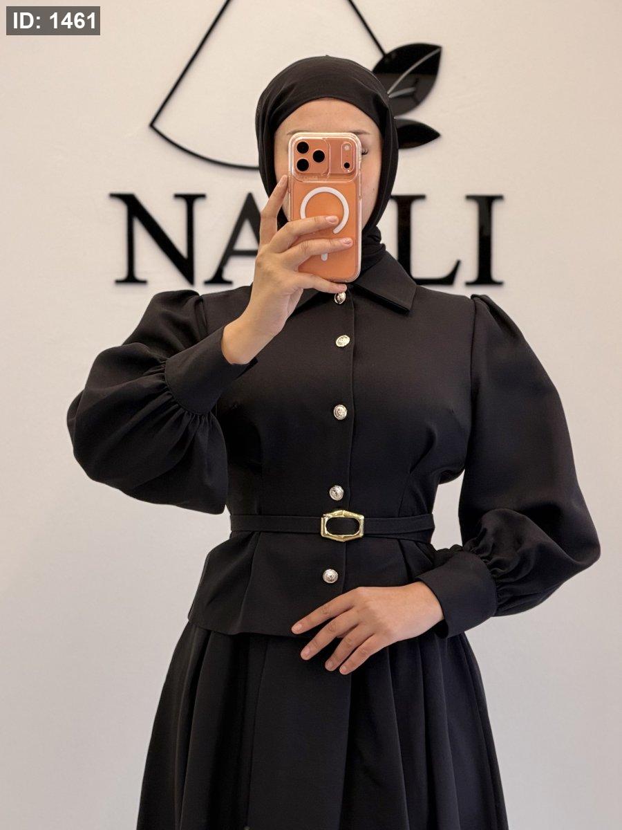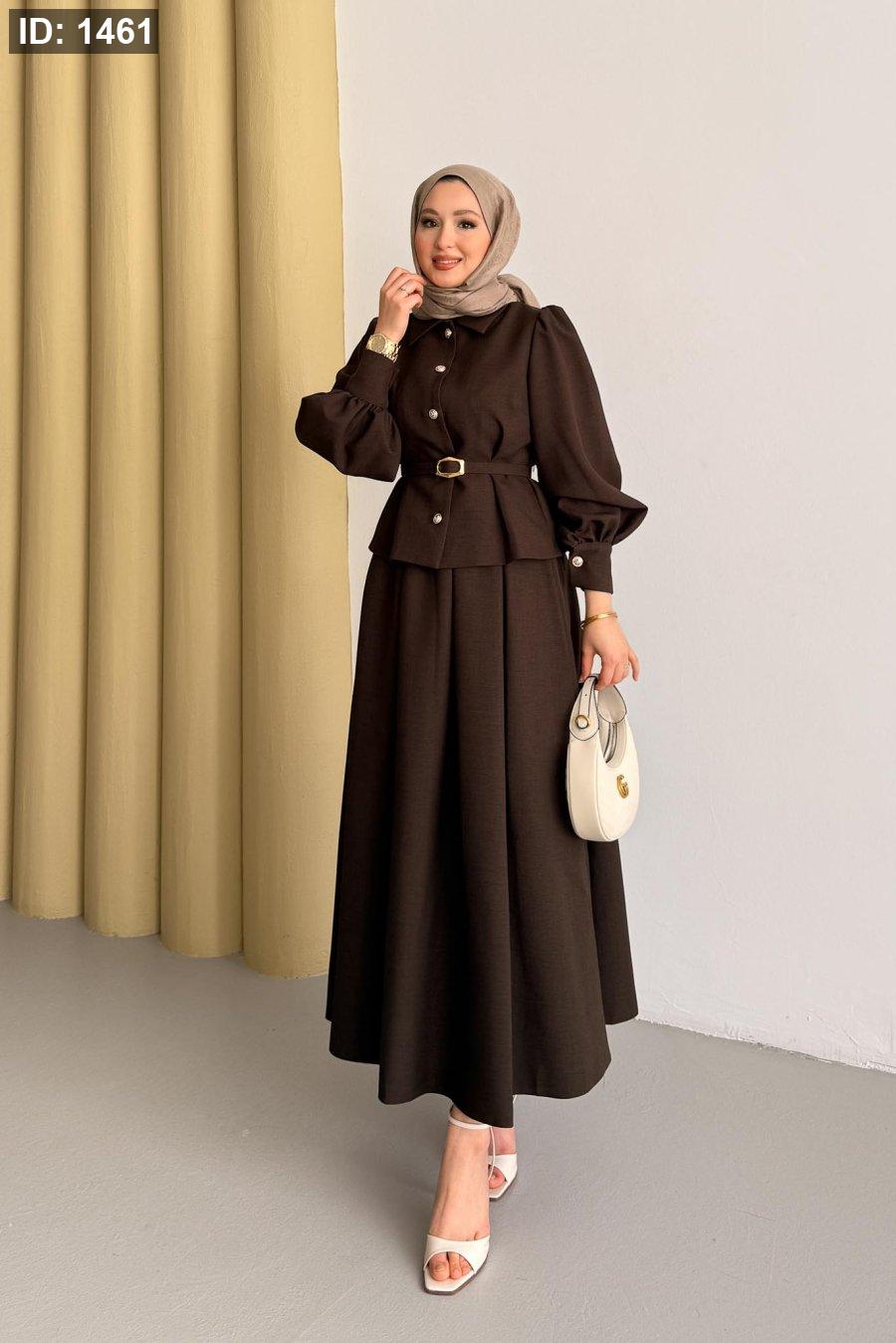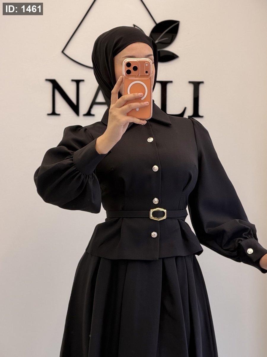 الطقم ٣ قطع : جكيت وتنورة وحزام جلد