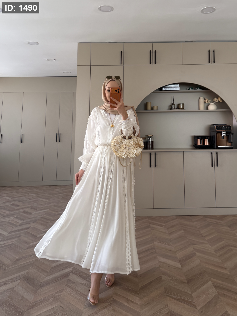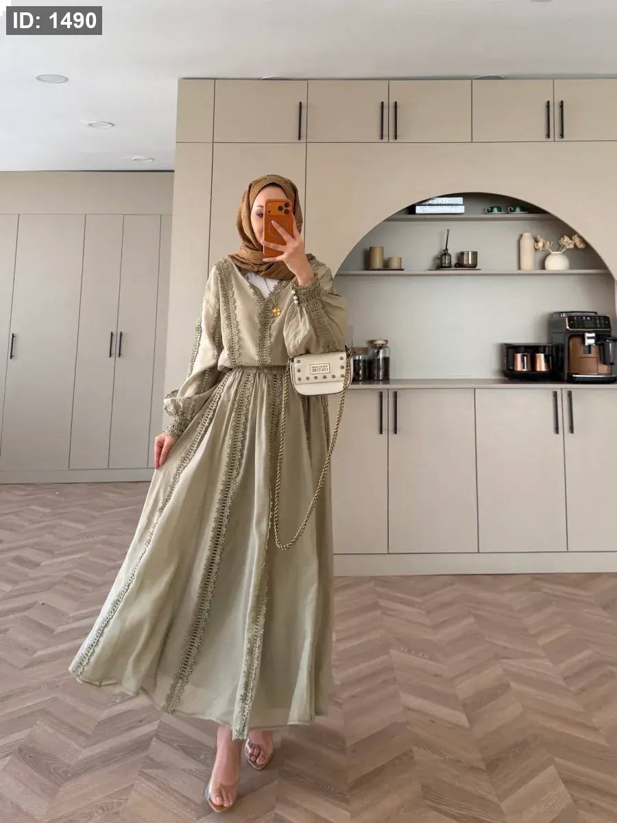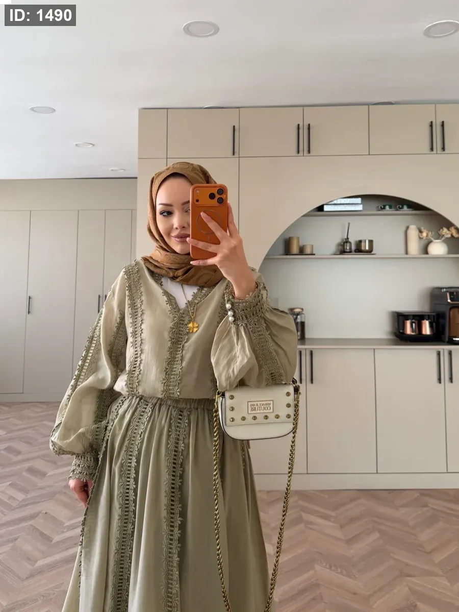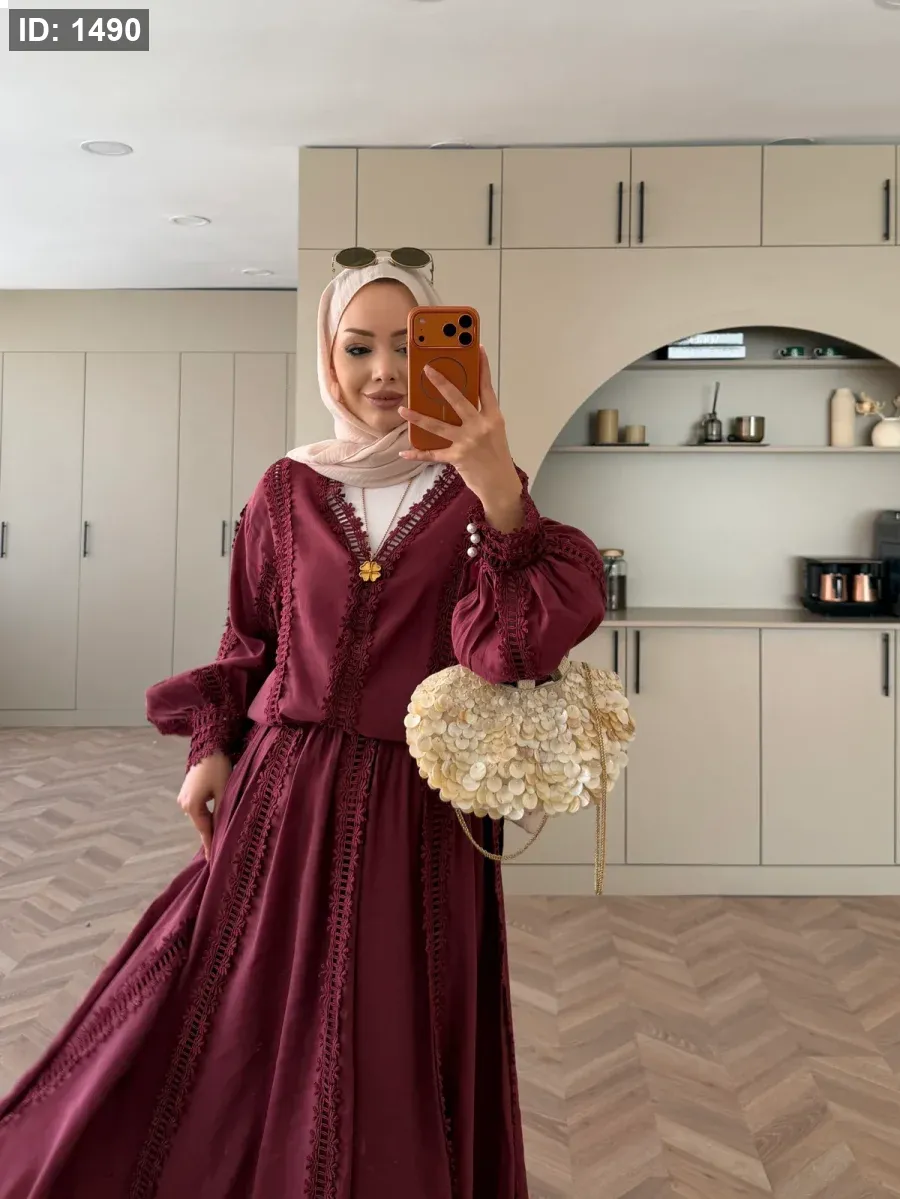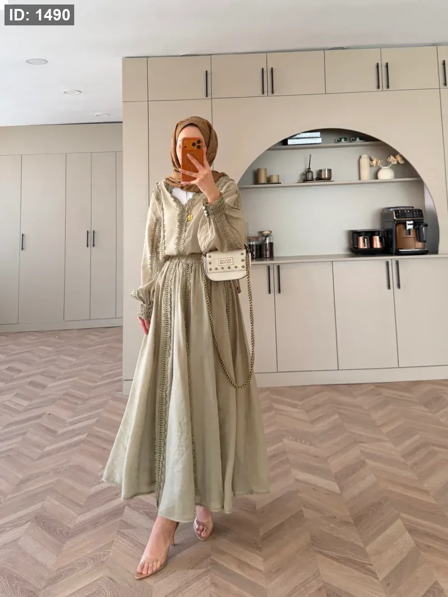 الجزء العلوي بدون بطانة. التنورة مبطنة ولها حزام خصر مغيط . مقاسات المنتج: يناسب المقاسات من 36 إلى 42 (مقاس قياسي). طول الجزء العلوي 65 سم، وطول التنورة 95 سم. طول العارضة 1.66 سم، ووزنها 60 كجم، وترتدي مقاس معتاد 38.
