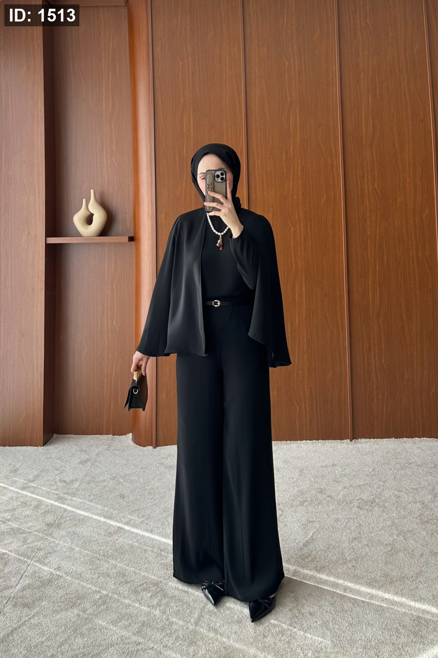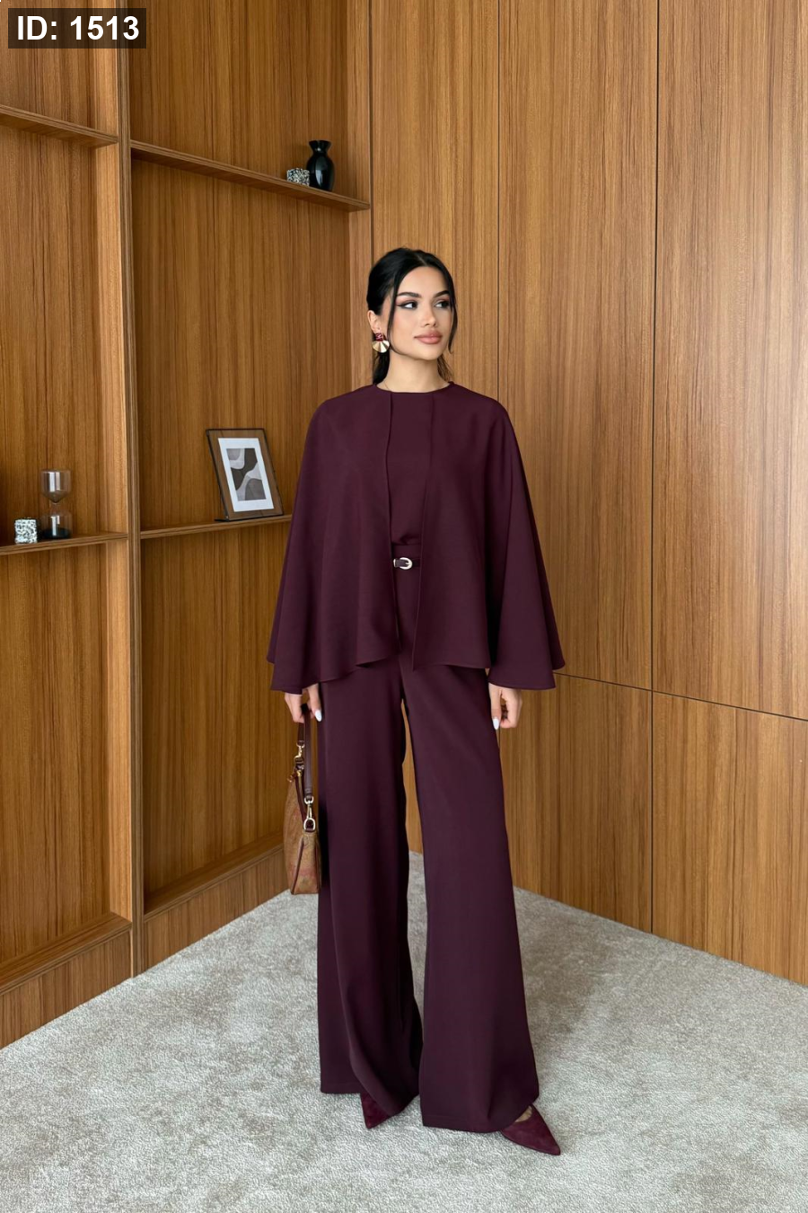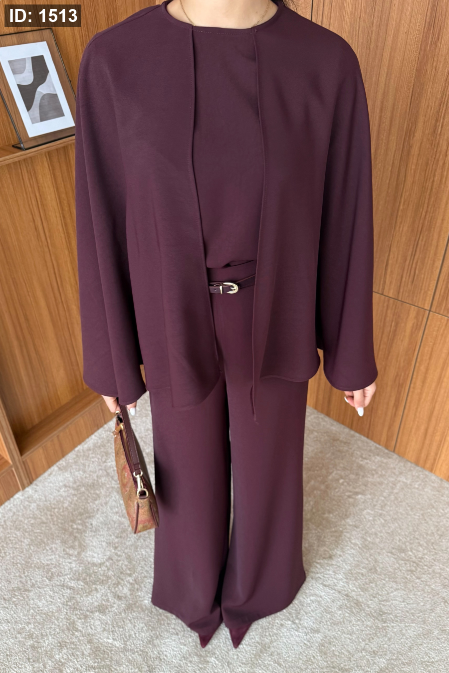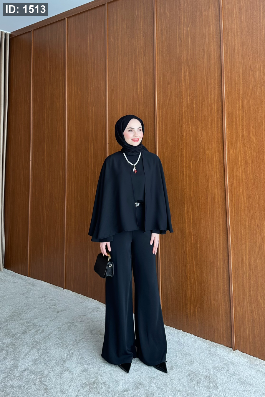 يتميز بتصميم يشبه الكاب. يتضمن حزامًا. البنطال مزود بخصر مطاطي. يبلغ طول الجزء العلوي 66 سم من الأمام و74 سم من الخلف، بينما يبلغ طول البنطال 112 سم. يبلغ طول العارضة 168 سم، ووزنها 57 كجم، وقد اختارت المقاس S.