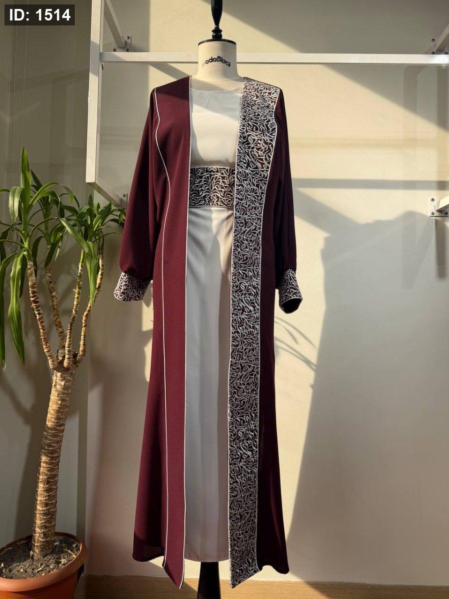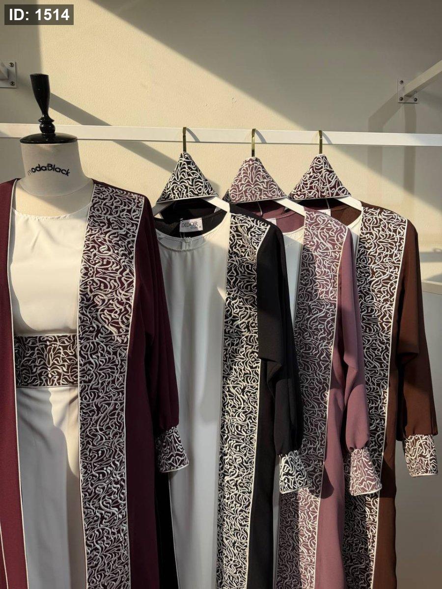 ٣ قطع - فستان بيسك وعباي مفتوحه وحزام عريض