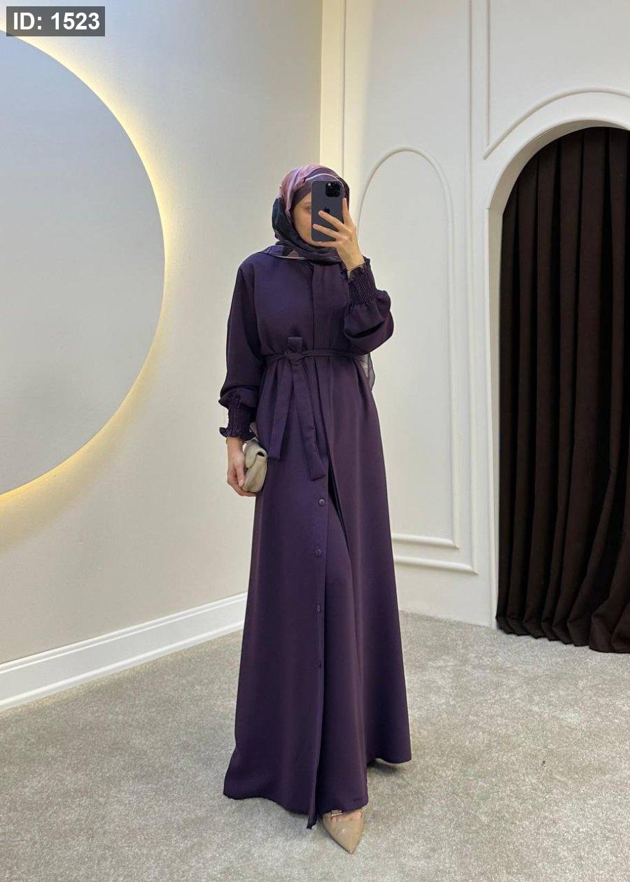 طول العباية ١٣٦ سم ازرار على طولها والقماش كريب