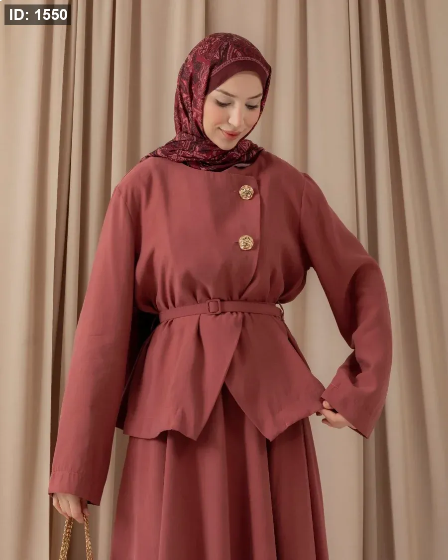 طول التنورة 95 سم والجكيت 60 سم ومعه حزام