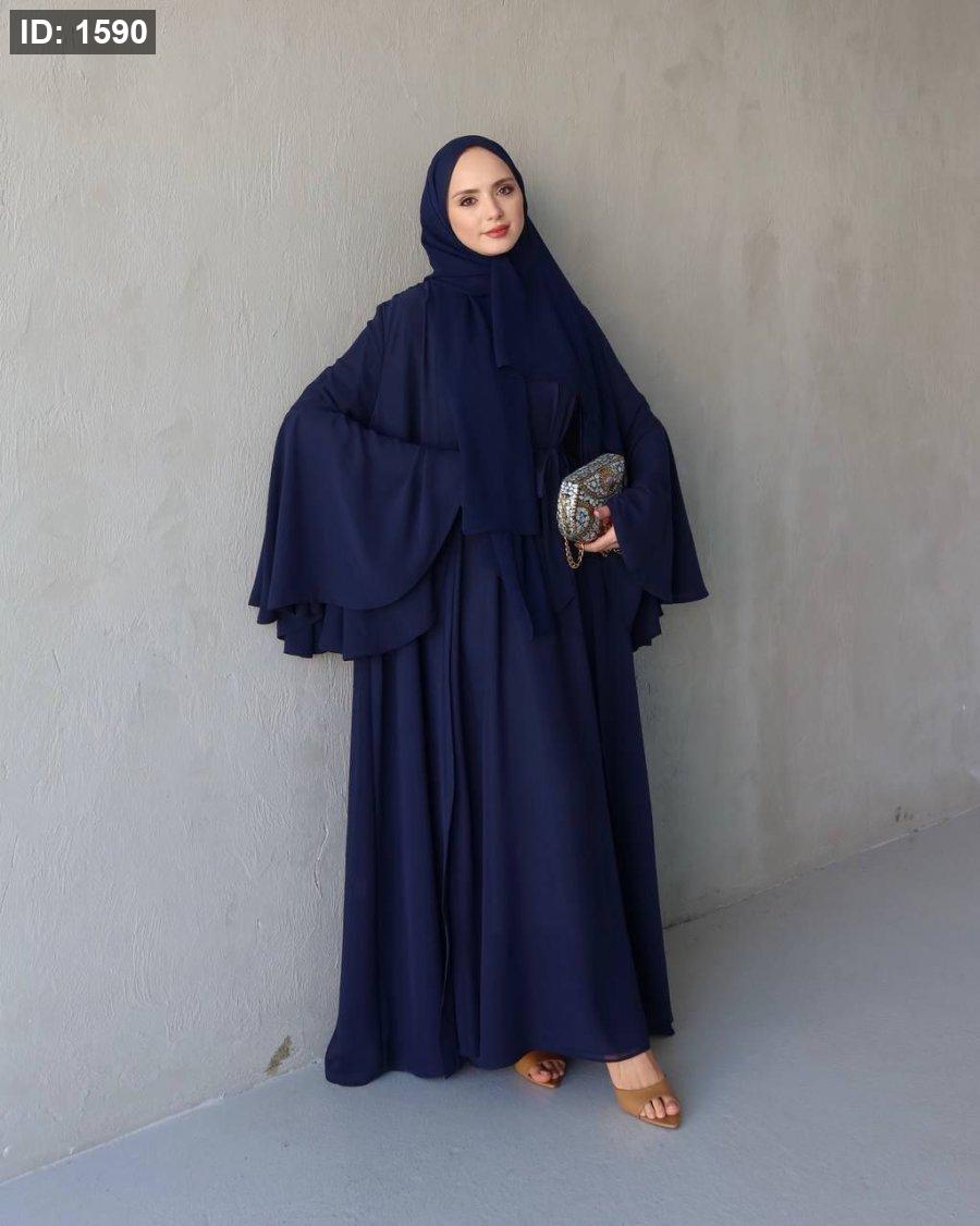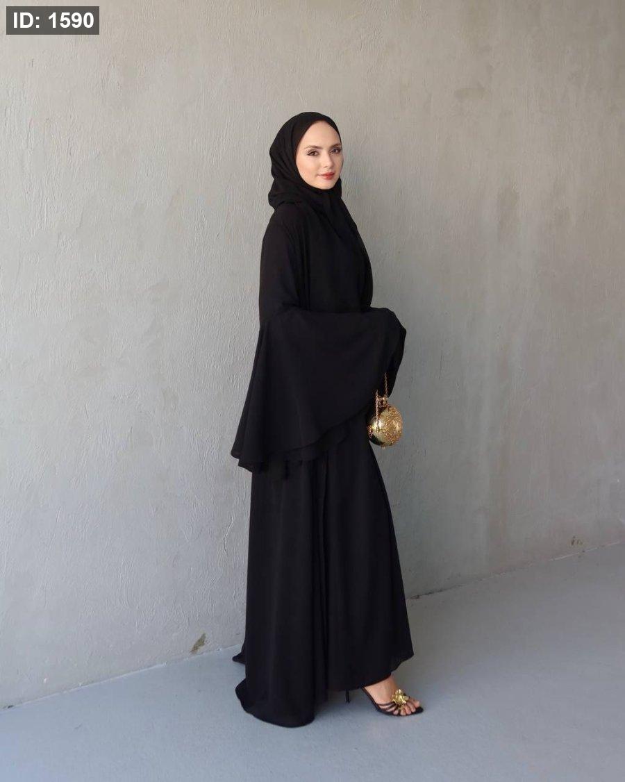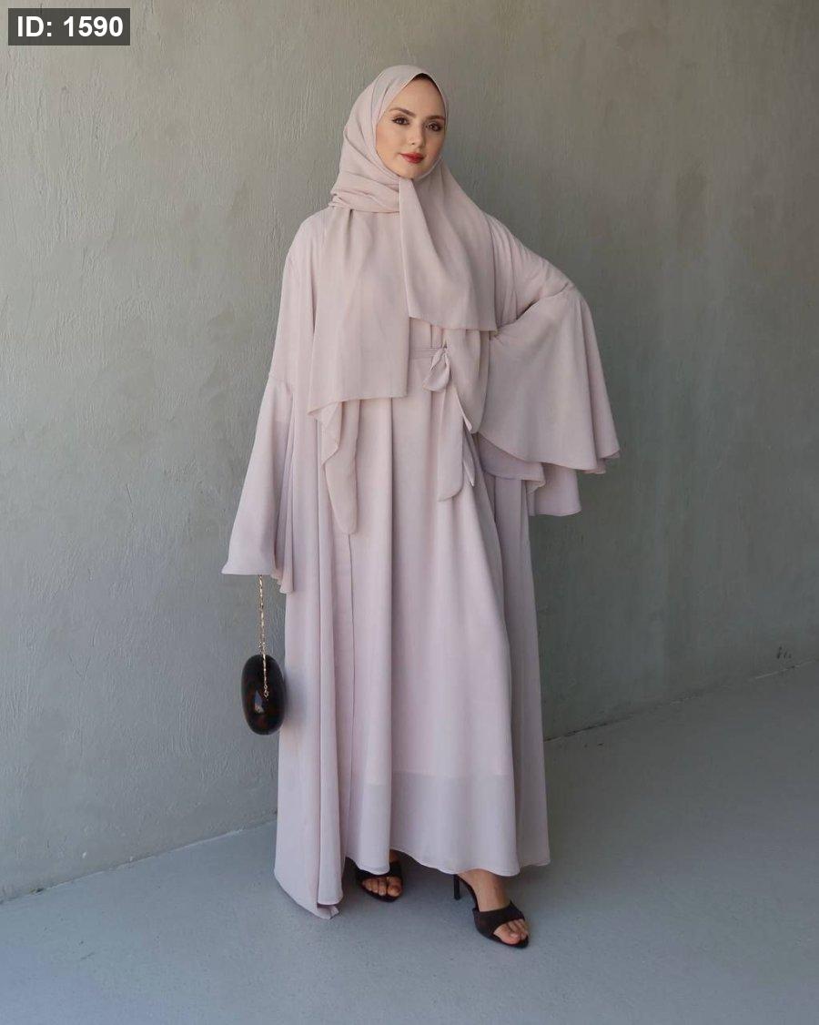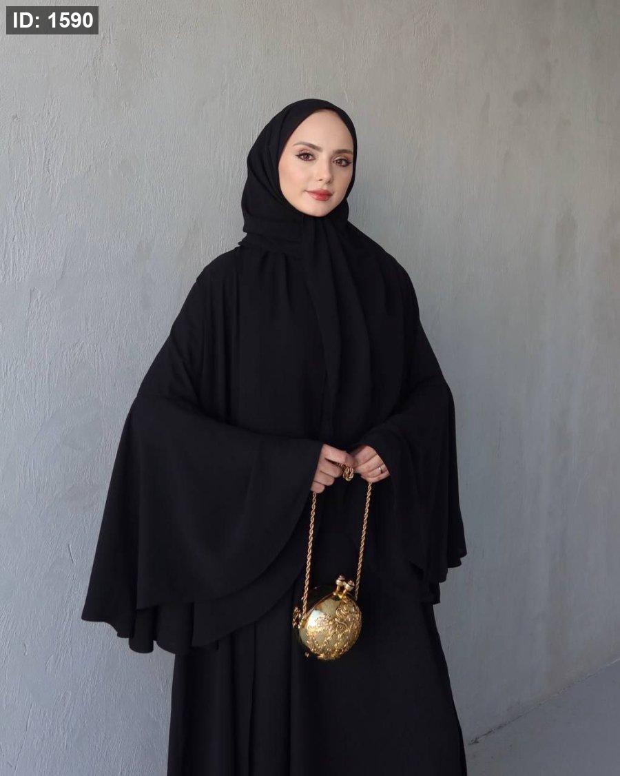طول العباي ١٤٣ سم وطول فستان البيسك ١٣٨ سم ومعها حزام