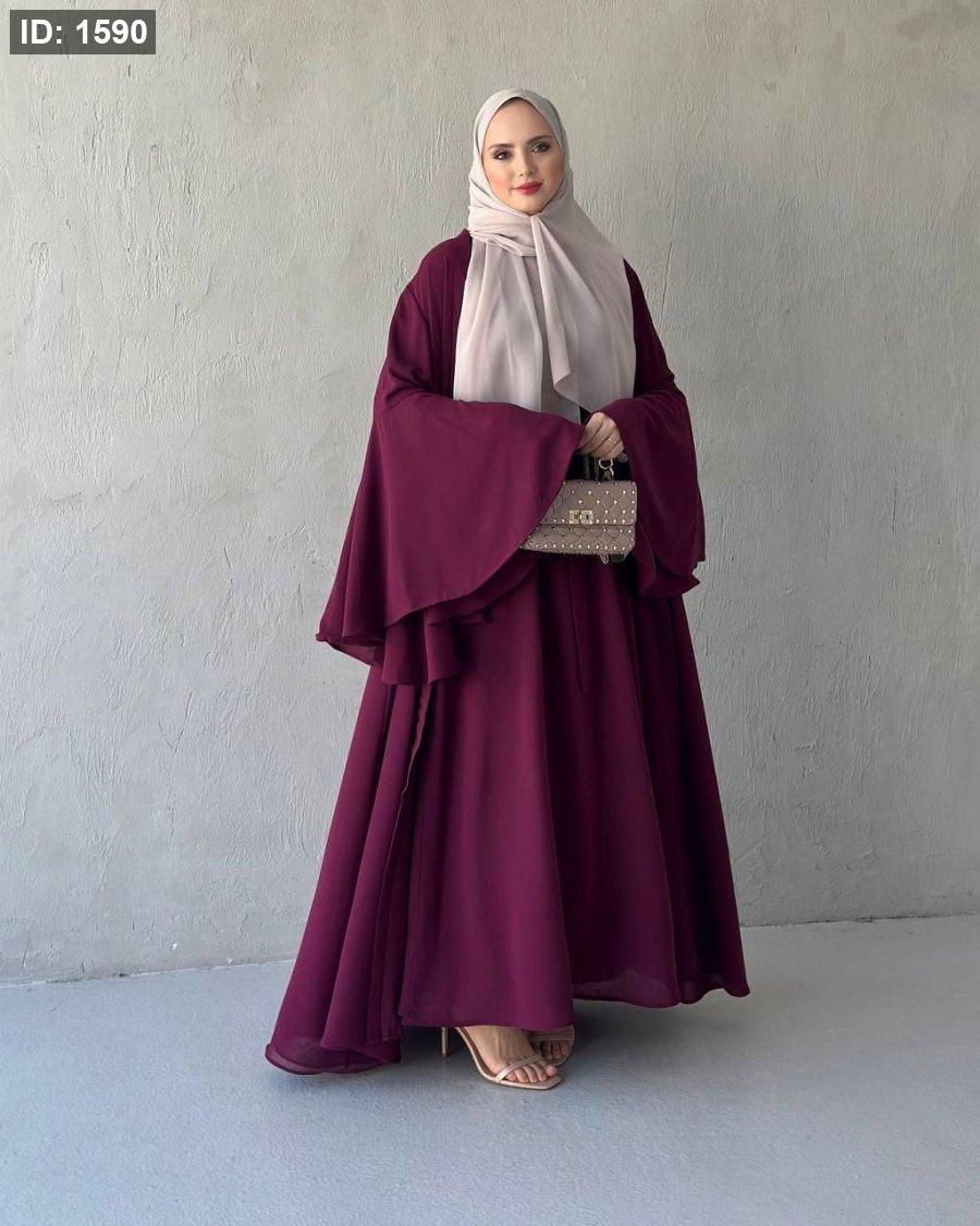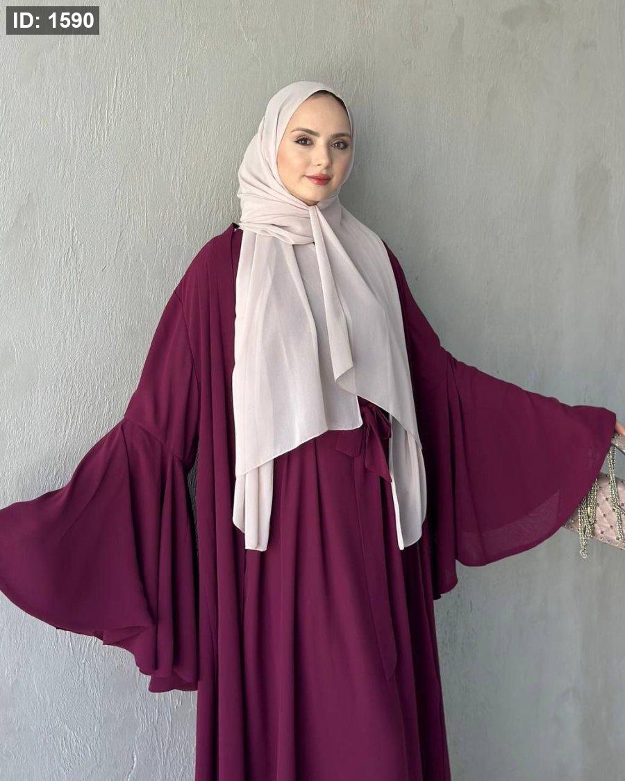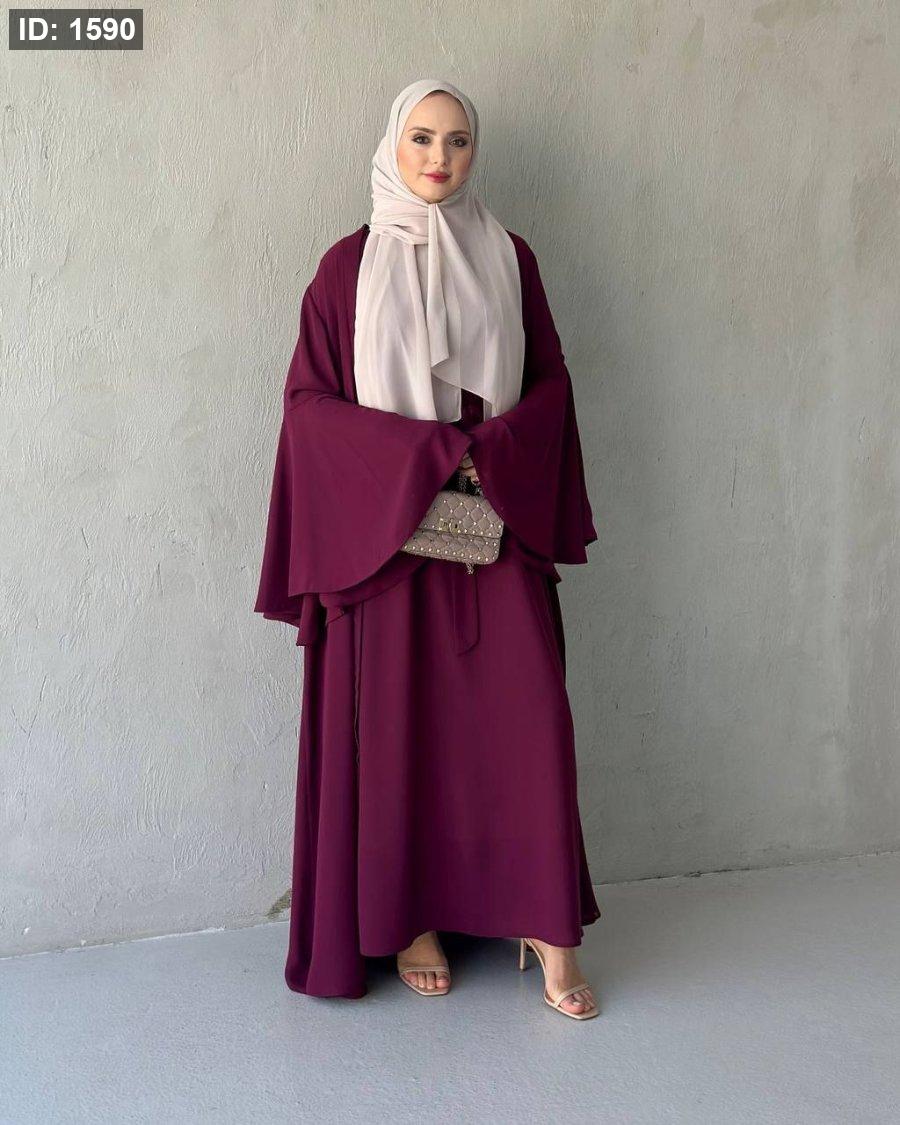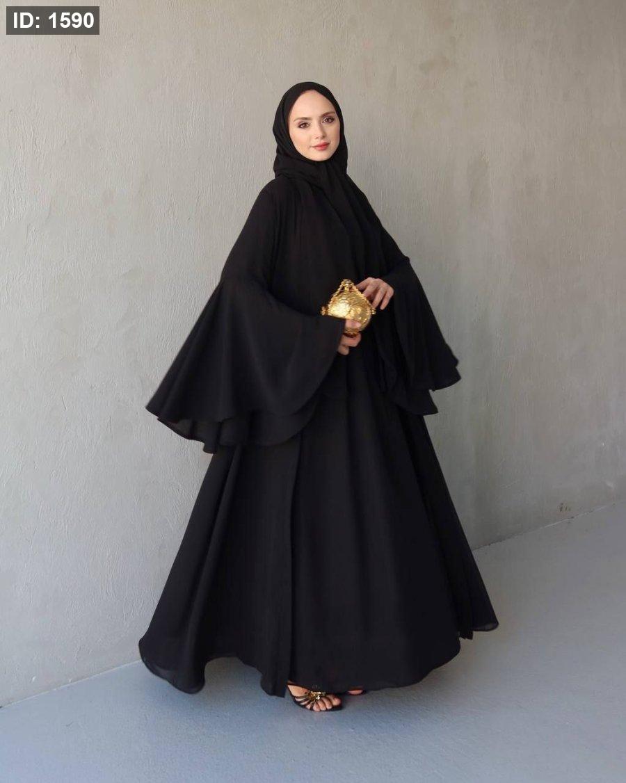طول العباي ١٤٣ سم وطول فستان البيسك ١٣٨ سم ومعها حزام