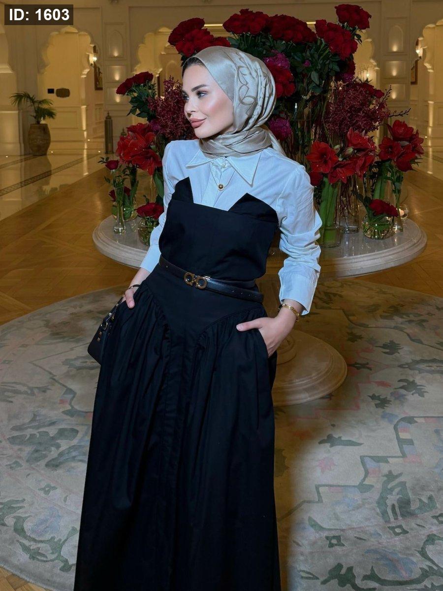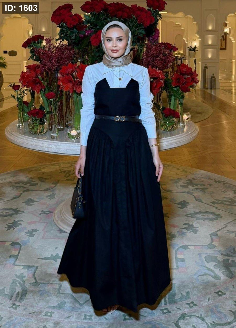 يبلغ طول الفستان 138 سم، ويحتوي على حزام. المقاس 1 يناسب المقاسات من 36 إلى 38، والمقاس 2 يناسب المقاسات من 40 إلى 42. وهو ذو قصة عادية.