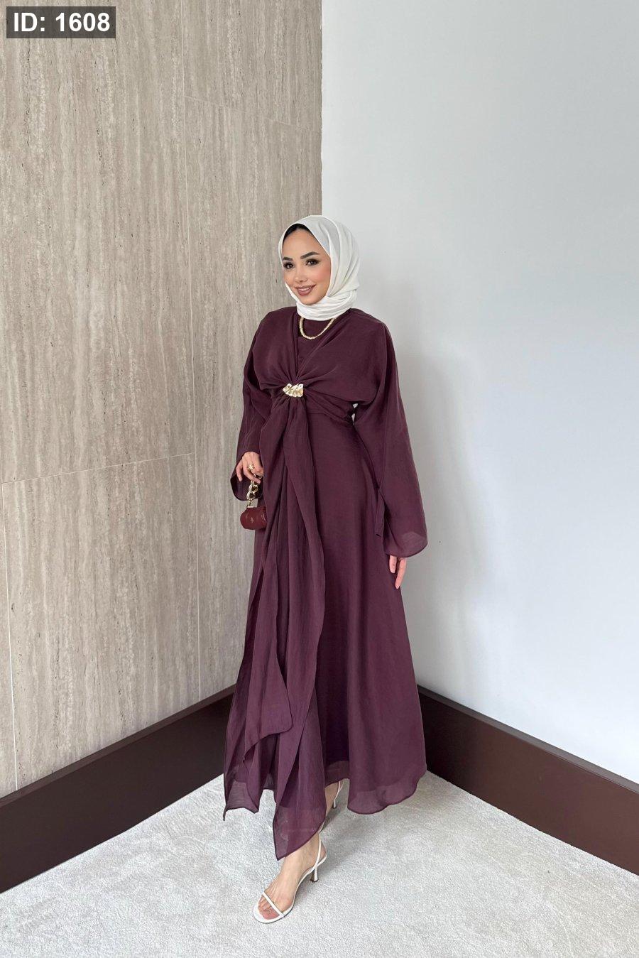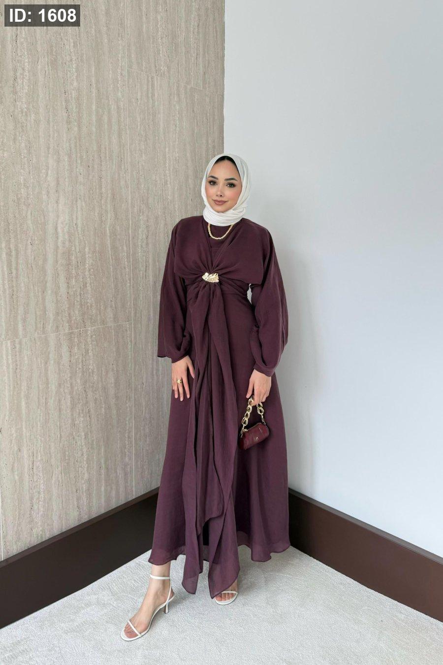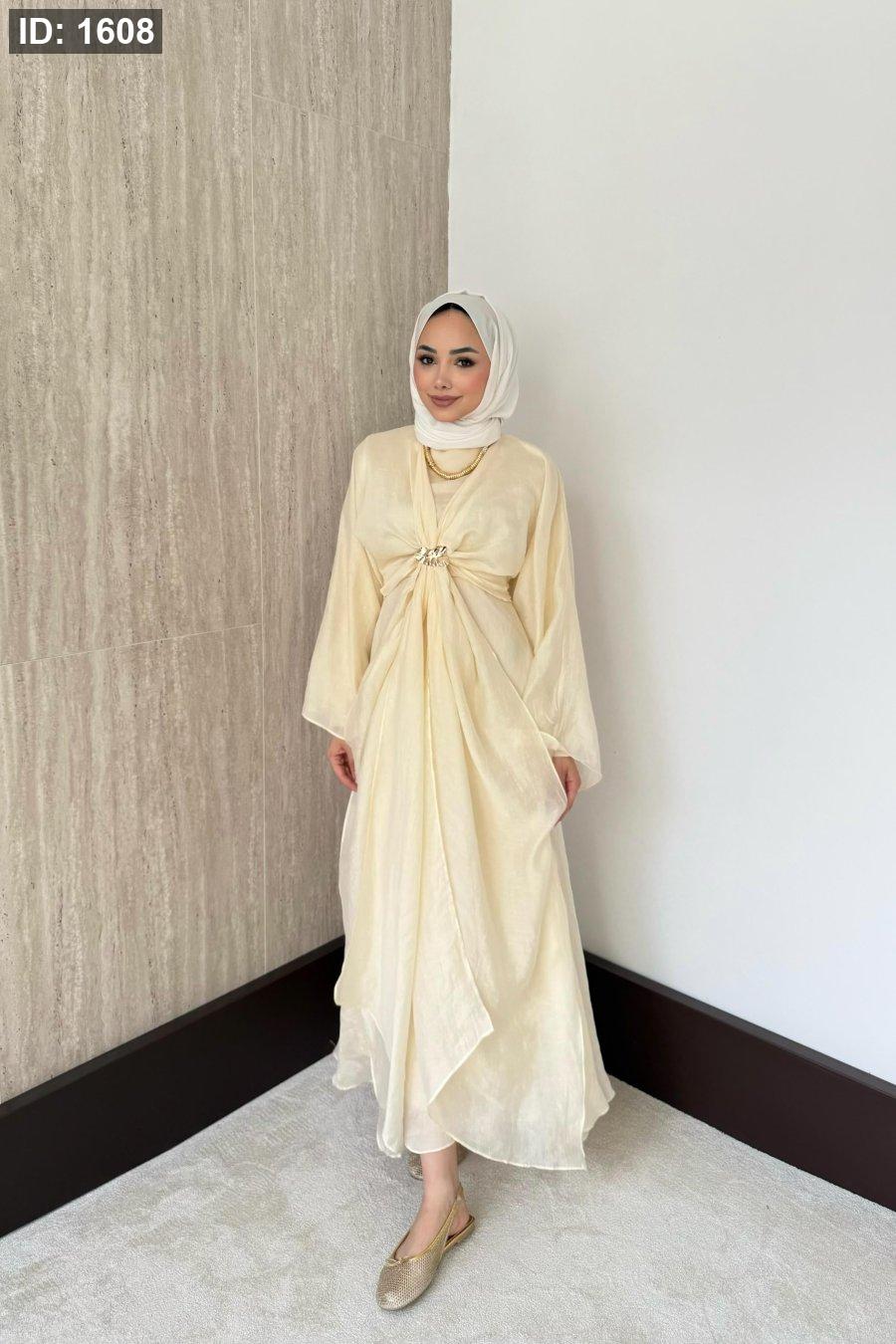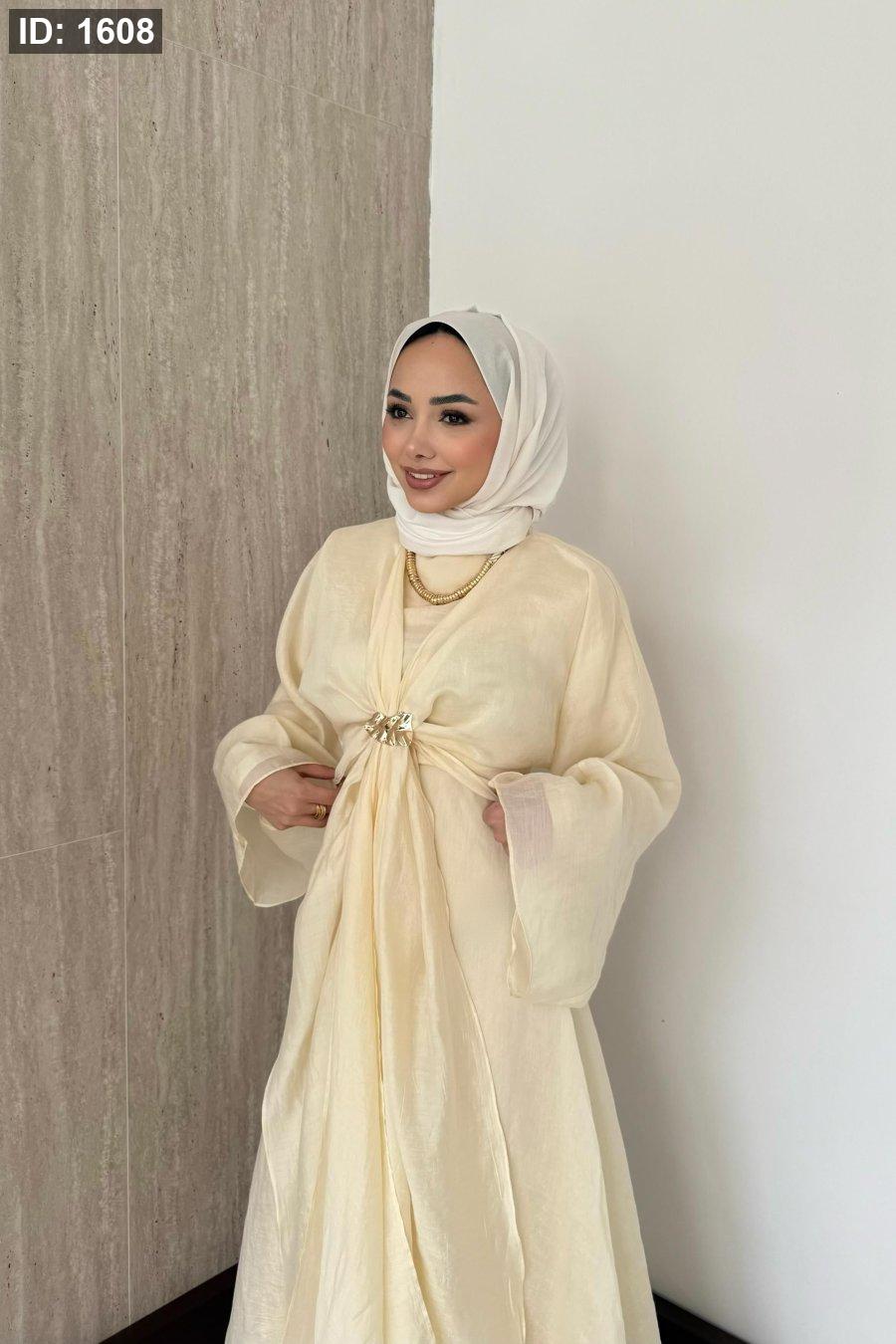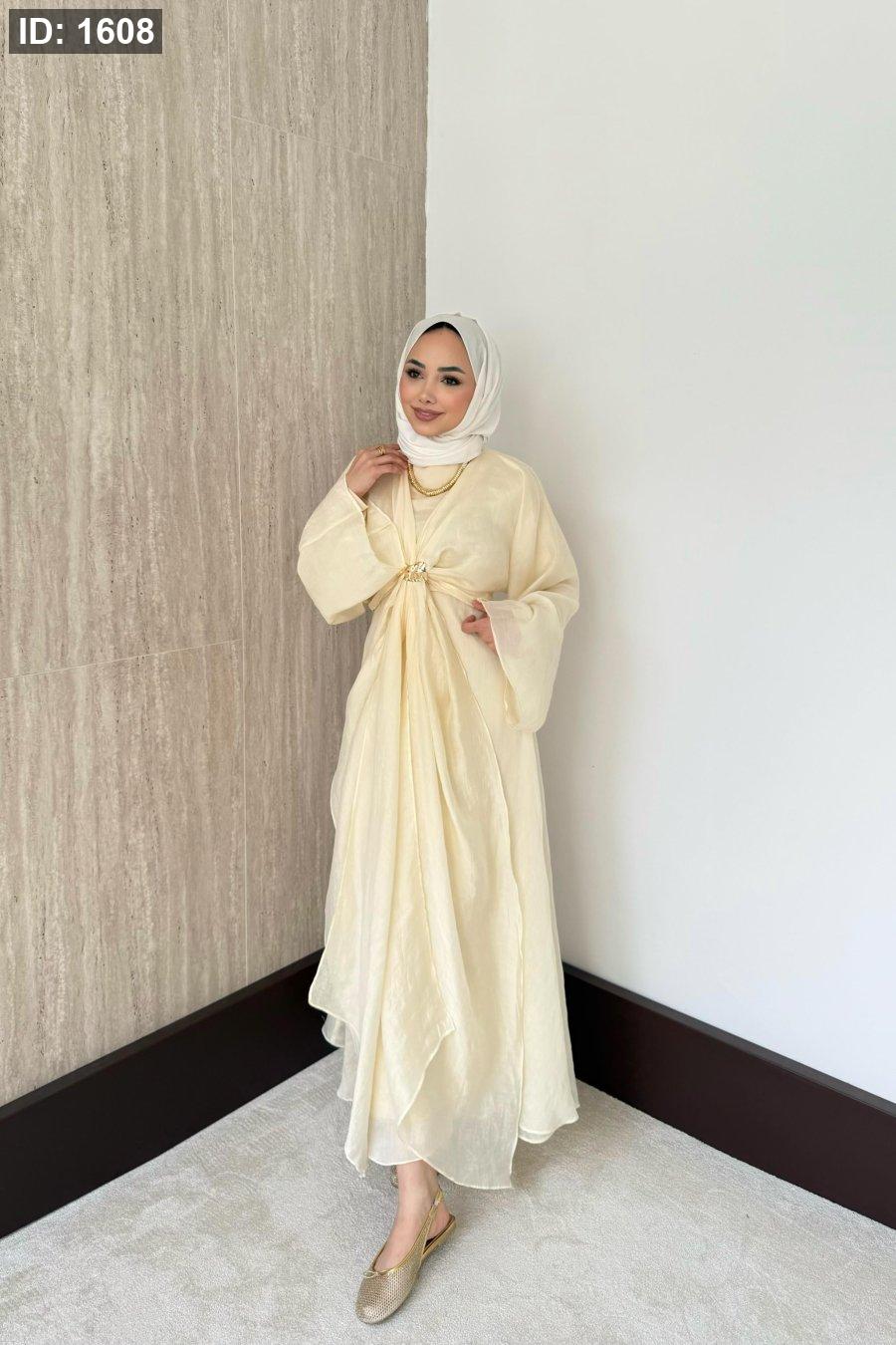 مقاسات المنتج: الطول: 135-137سم. يتميز بياقة دائرية، وسحاب خلفي، وأكمام مستقيمة، وخصر محدد، وبطانة داخلية، وسترة بوليرو قابلة للفصل.