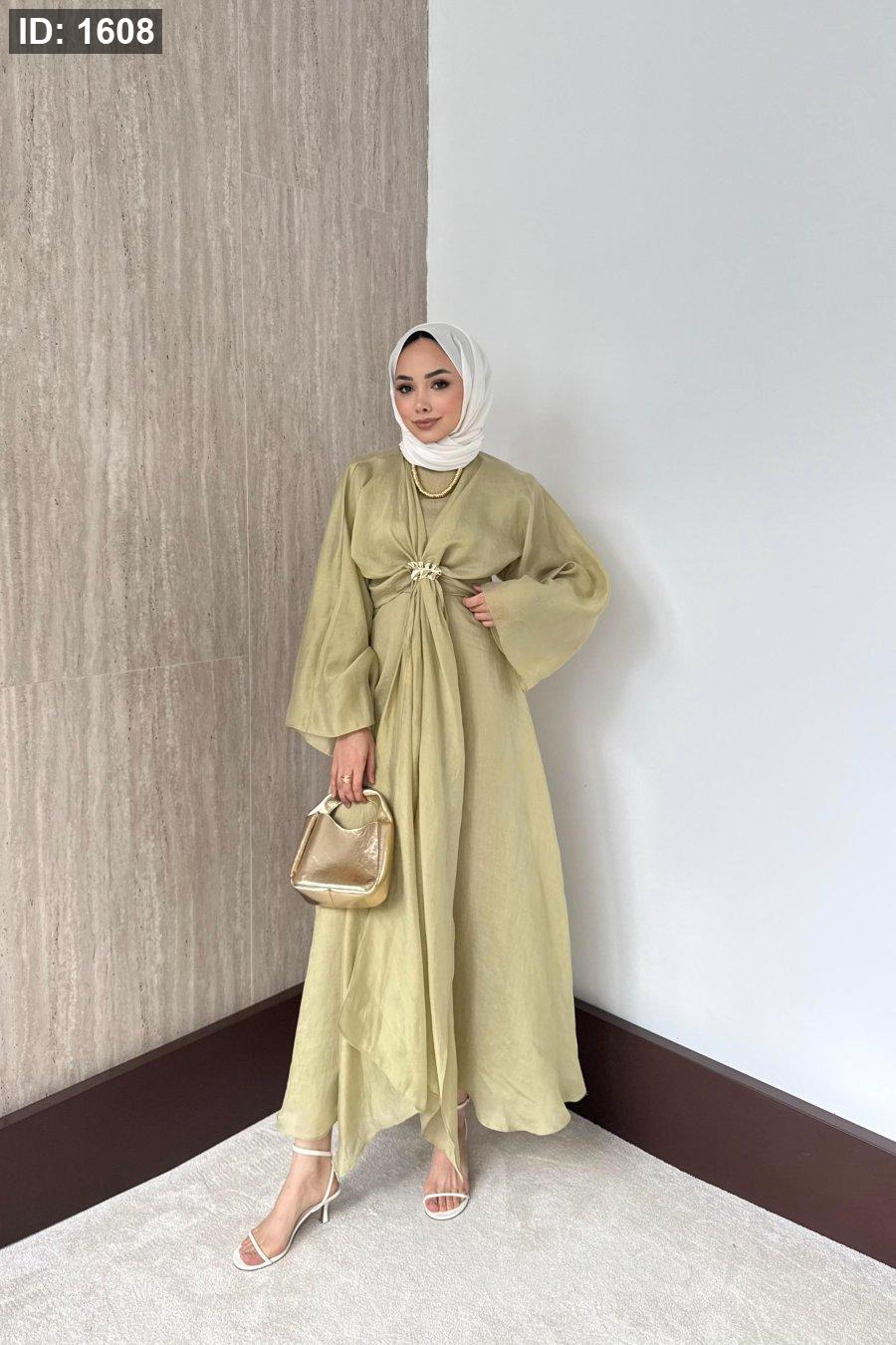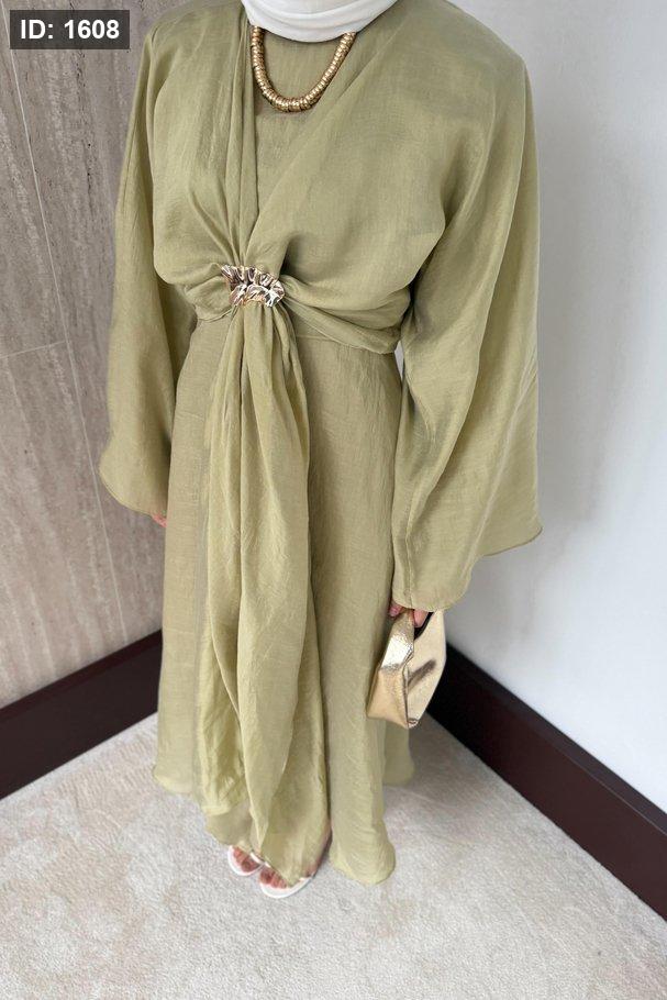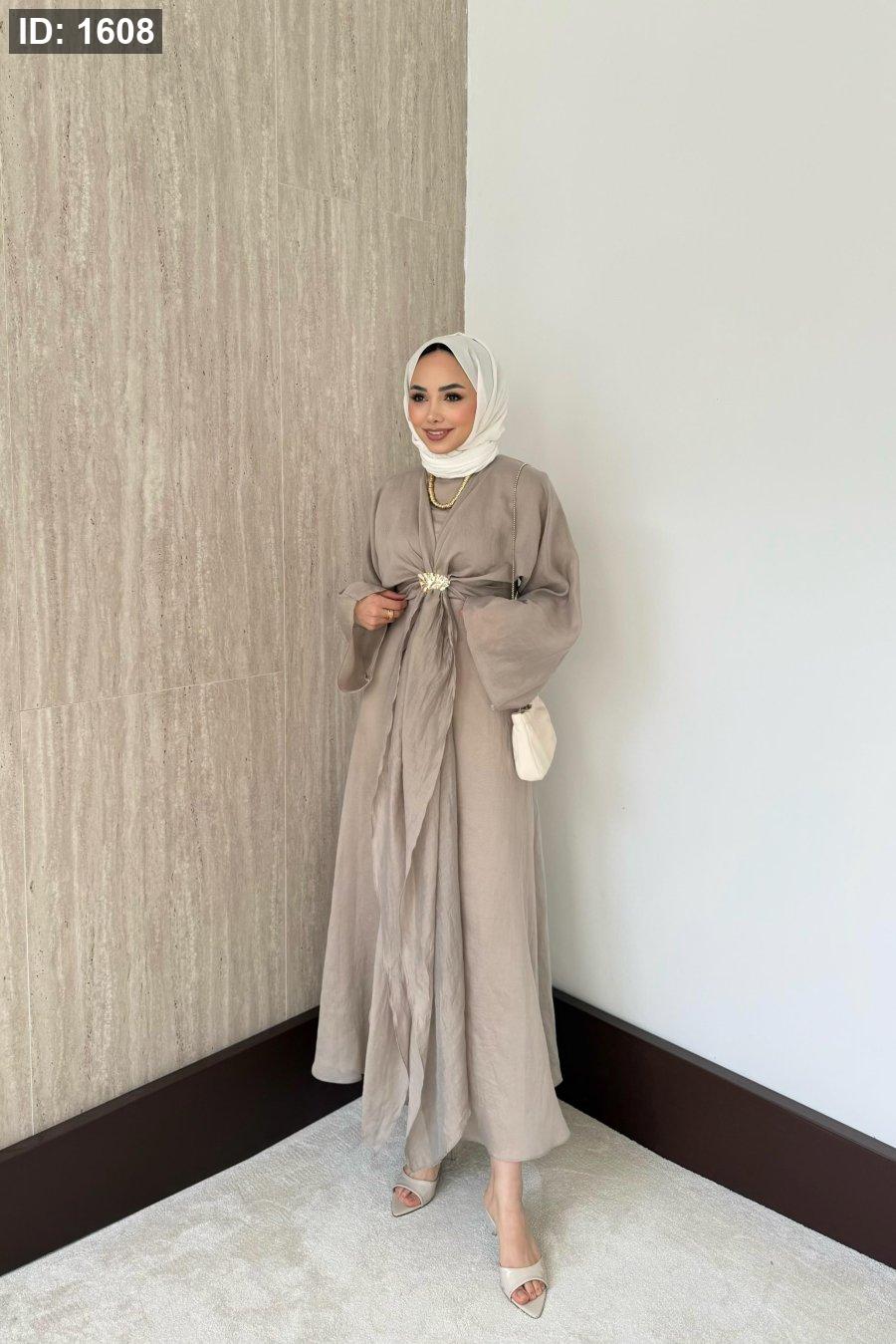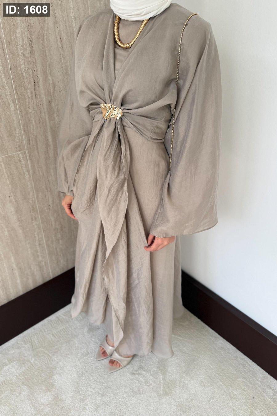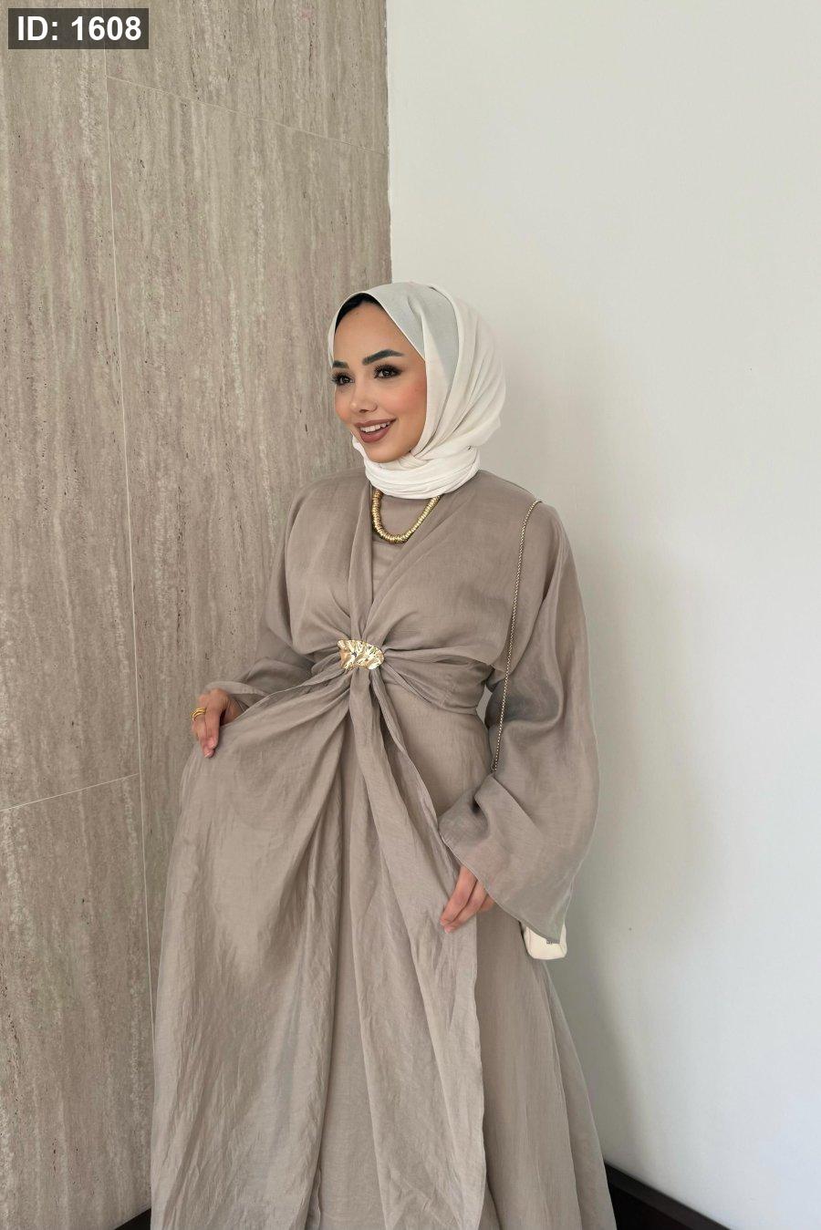 مقاسات المنتج: الطول: 135-137سم. يتميز بياقة دائرية، وسحاب خلفي، وأكمام مستقيمة، وخصر محدد، وبطانة داخلية، وسترة بوليرو قابلة للفصل.