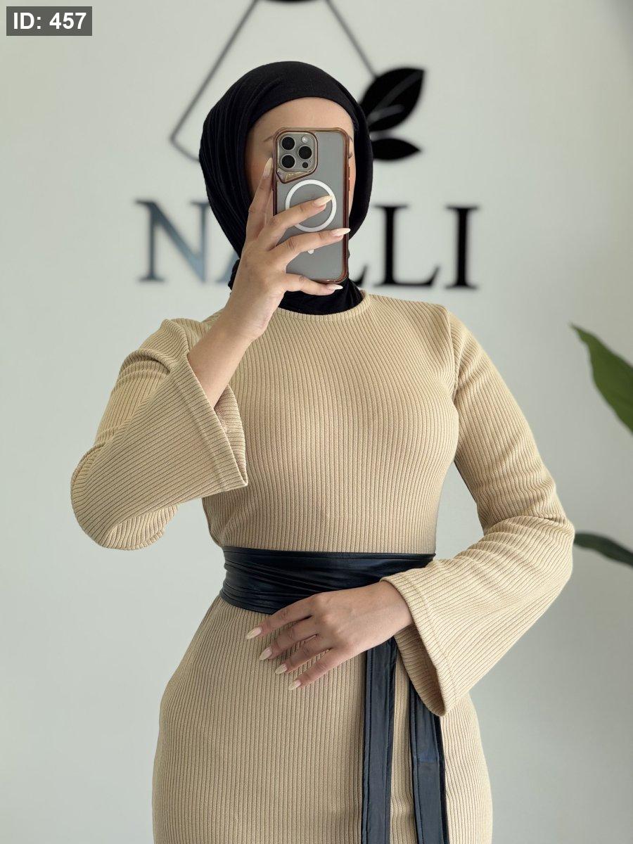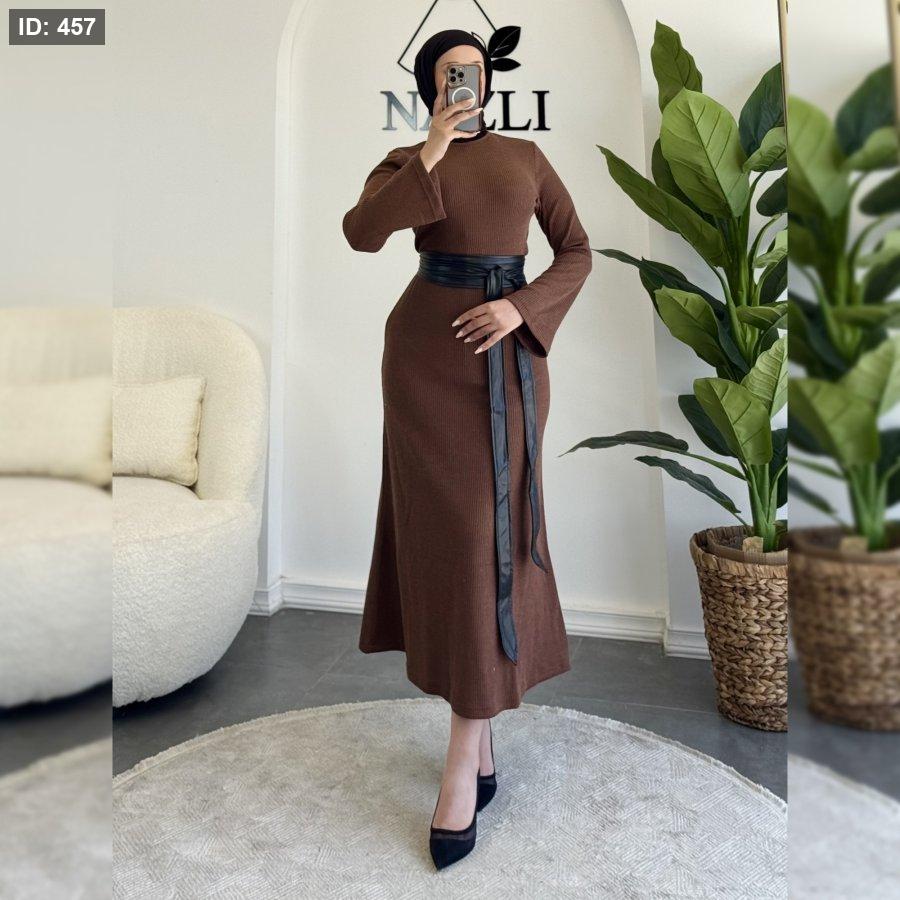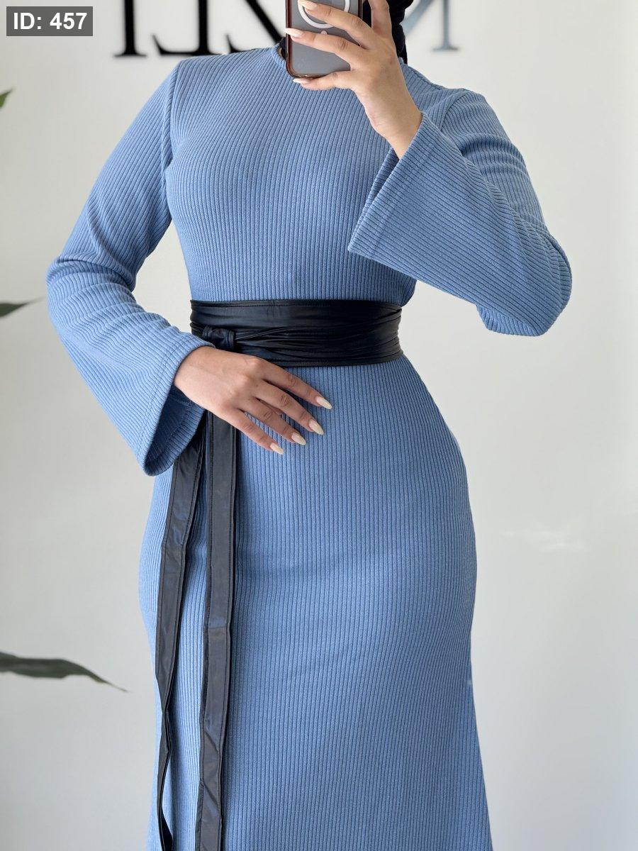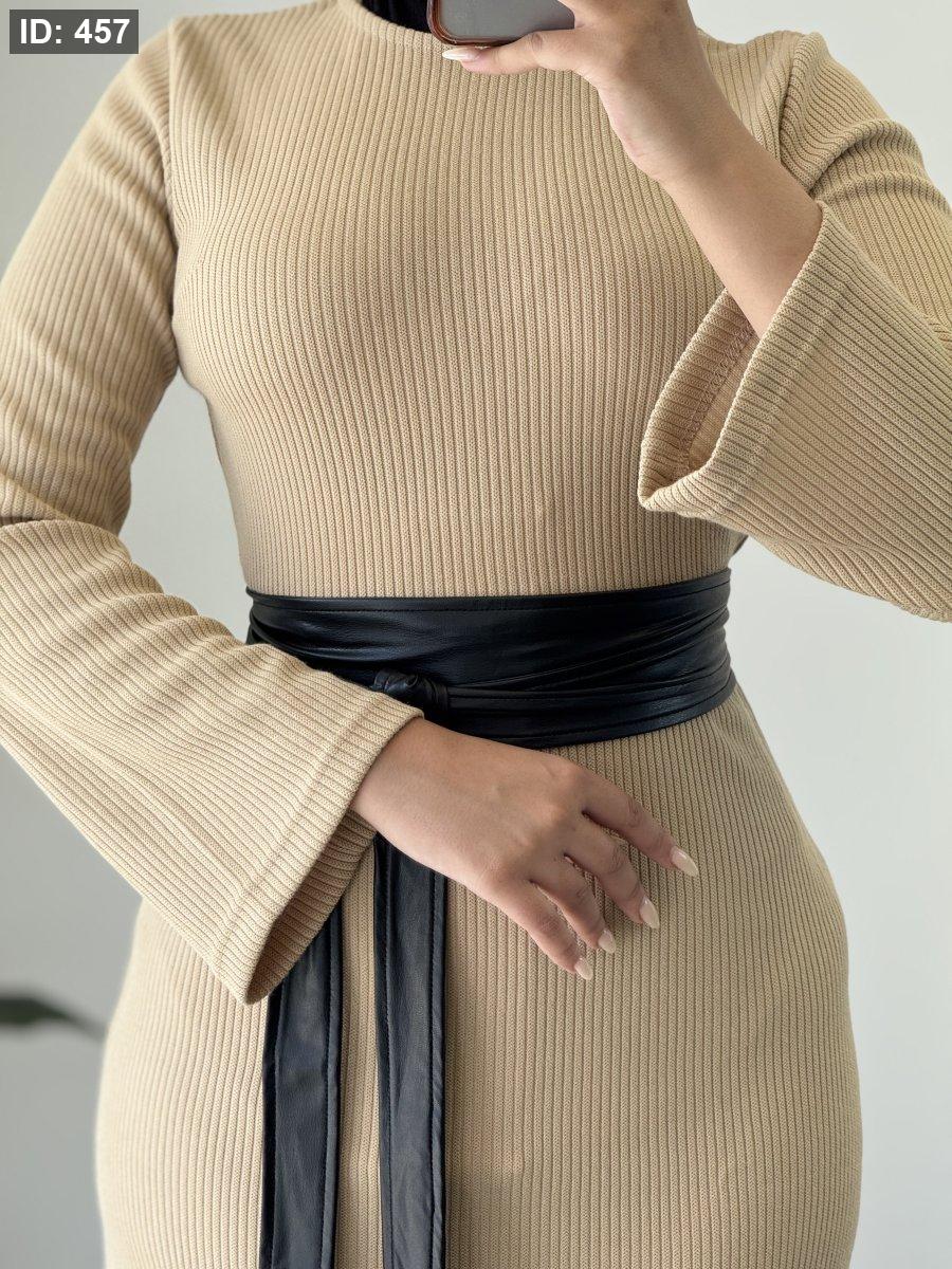 فستان خريفي شتوي مع حزام جلد - K-1809